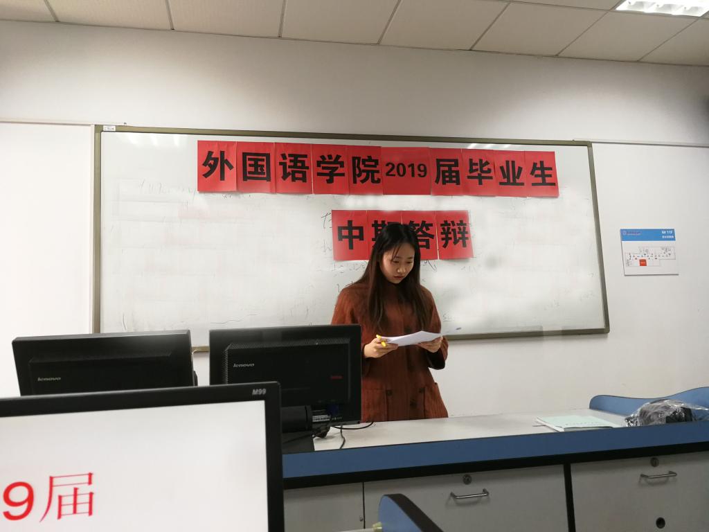 3月28日(周四)下午,BB贝博艾弗森官网召开了2019届英语专业毕业论文中期答辩会,对本专业62名毕业生的毕业论文进行了中期检查。
