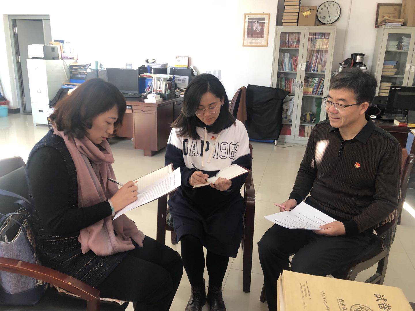 按照学院“不忘初心、牢记使命”主题教育安排部署,12月2日下午16:00--17:00,英语专业教研室党支部在610室召开了支委会,全体支委响应学院“谈学习体会、谈问题差距、谈整改思路和举措”的要求,集中交流了自己的学习体会。党支部书记张志华同志指出,目前党员中存在着师生服务不到位、宗旨意识不强等问题,要求各支部委员,在接下来的问题检视会上,要以身作则,与党员同志们一起认真查找问题,深入剖析,狠抓整改落实,以推动主题教育专项工作取得实质成效。接下来,张志华同志就本周四即将开展的组织生活会进行工作布置:1)总结支部问题清单、原因剖析及整改措施方案。经过前两次的修改及完善,支部问题清单、剖析原因及整改措施在“立德树人”方面,依然存在不足。支委张莉同志勇担重任, 除了对该部分进行了重点修改之外,对其他四部分也做了进一步的修改和完善。2)各位支委分别发言,讨论并完善了支部组织生活会的召开方案。3)各位支委协助支部党员进一步完善个人问题清单(包括剖析原因及整改措施)。4)各位支委要与教师党员谈心交流,提高政治站位,以高标准、高质量提高党性修养,切实发挥党员的模范带头作用,发扬斗争精神,具备刀刃向内的勇气,开展批评与自我批评,深挖思想根源,立行立改,形成本支部和个人详细具体的整改方案。(撰稿人:李海燕;摄影:刘娲路)