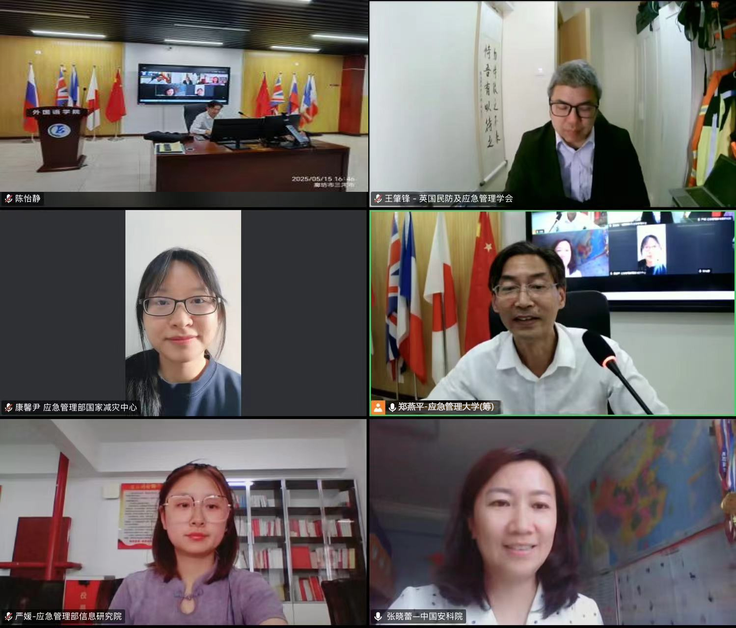 5月15日下午,应急管理部国家减灾中心国际合作部一级翻译康馨尹,中国安全生产科学研究院新业态安全研究所高级工程师、注册安全工程师、高级合规师张晓蕾,应急管理部信息研究院工程师严媛、英国民防与应急管理学会王肇锋等专家学者,应邀参加贝博官网BB贝博艾弗森官网举办的应急管理外语人才培养研讨会。会议由学院副院长郑燕平教授主持,学院领导、专业负责人、英语和日语专业教师共计30多人参加会议。