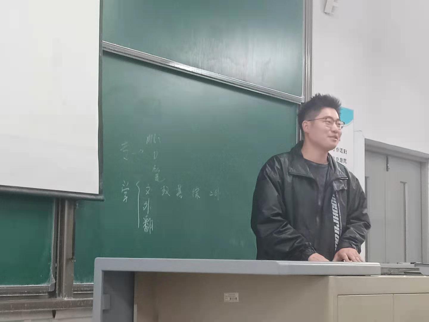 首先在主持人边嘉怡介绍各位学长学姐的考研情况后。由来自哈尔滨师范大学西语学院英语笔译专业的苗思田学长进行经验交流分享。苗思田学长分别从院校报考,复习计划,时间安排,伙伴寻找等多个方面进行了分享。幽默的谈吐为大家带去了阵阵欢笑。
