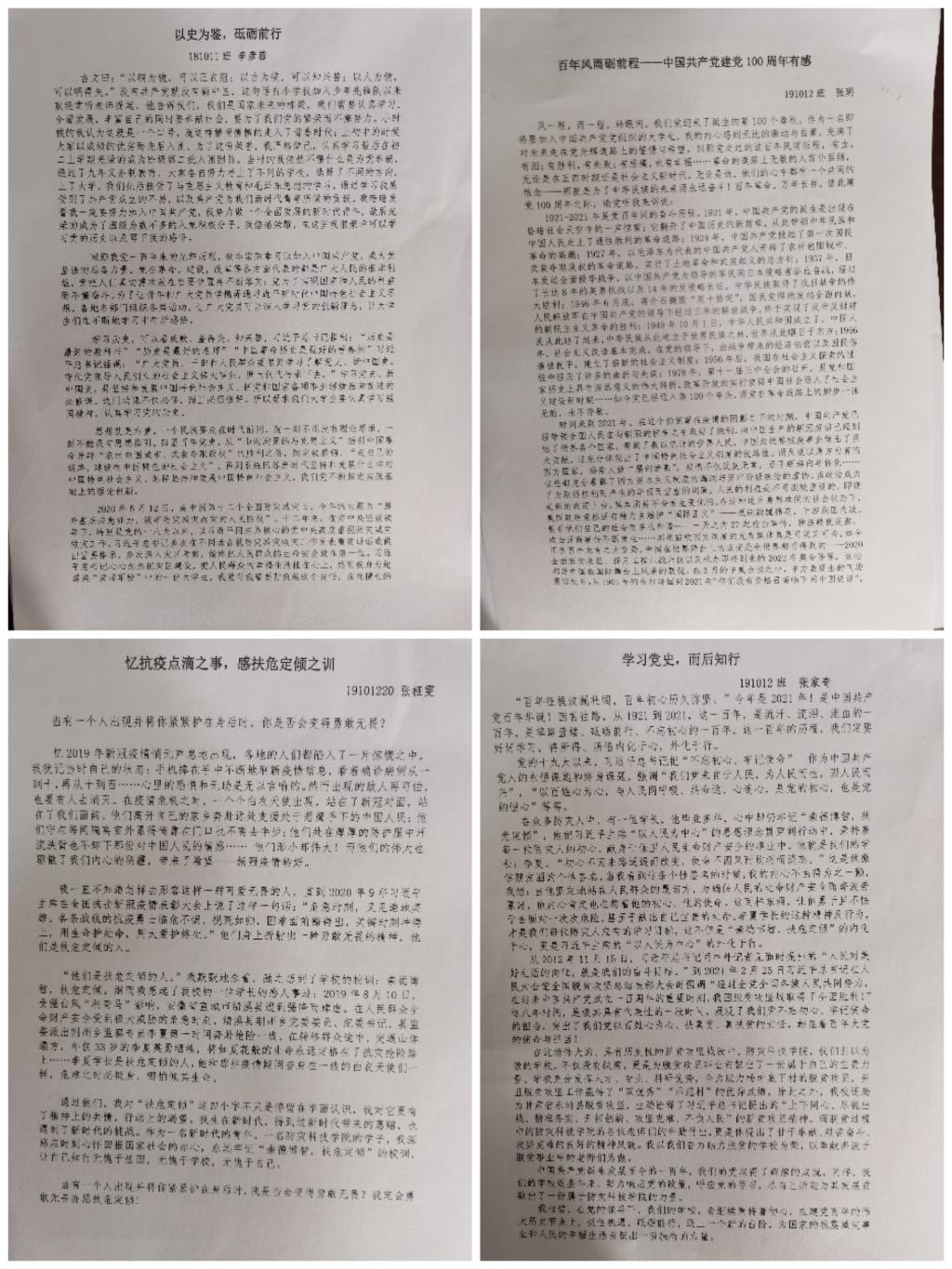 为认真学习贯彻习近平总书记在党史学习教育动员大会上的重要讲话精神,按照贝博官网《中共BB贝博艾弗森官网委员会开展党史学习教育实施方案》的要求,BB贝博艾弗森官网党总支以“学党史、做贡献”征文活动为契机,深入开展党史学习教育,广大入党积极分子、预备党员、党员在学习党史的过程中,感悟初心使命,汲取奋进力量,赓续时代华章。此次活动,贝博官网共收到征文30余篇,征文内容包括:学党史,谈感悟;我的红色记忆;贝博官网优秀的共产党员;伟大的抗震救 灾精神,学校发展畅享等。同学们从多个角度真挚讲述我党百年历史、红色故事,挖掘整理出蕴涵于其中感染人、鼓舞人、教育人的红色精神;撷取身边共产党员身上的闪光点,讲述对自身的启示与激励;通过此次征文,同学们畅谈自己在党史学习教育中的收获与体会,抒发颂党敬党爱党的真挚情感情。