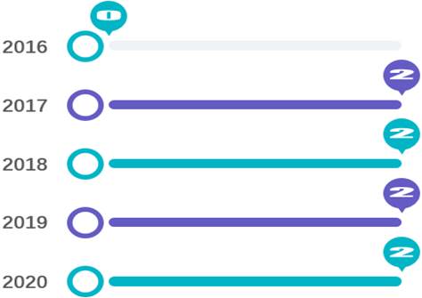59篇论文中,2016年发表21篇,2017年发表7篇,2018年发表9篇,2019年发表11篇,2020年发表12篇。